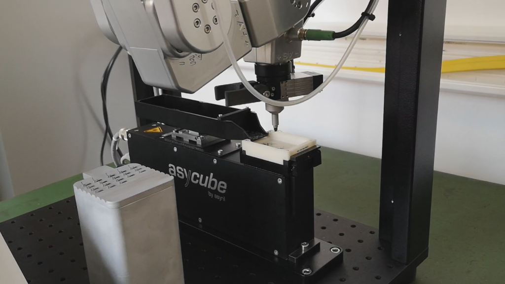 Christophe Taramarcaz : Notre partenaire stratégique le plus important est Mecademic, jeune société montréalaise, qui propose un bras robotique 6 axes ultra compact, le Meca500. Ce petit robot répond parfaitement au besoin du concept SMF : Précis, ultra-compact, contrôleur intégré, communication par TCP/IP ou EtherCat, simple d’utilisation et très abordable.